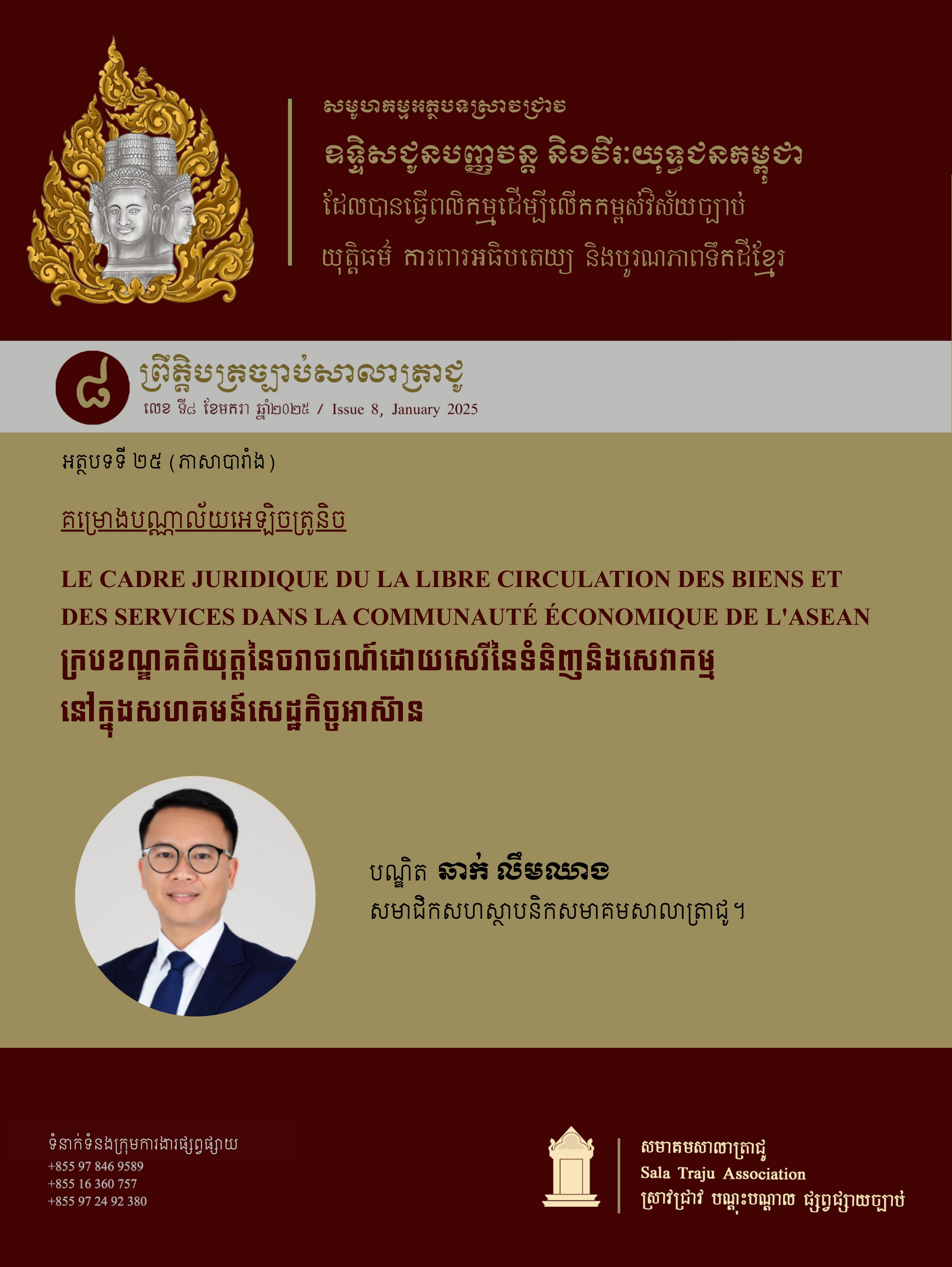 ២៥. Le cadre juridique du la libre circulation des biens et des services dans la Communauté économique de l’ASEAN / ក្របខណ្ឌគតិយុត្ដនៃចរាចរណ៍ដោយសេរីនៃទំនិញនិងសេវាកម្មនៅក្នុងសហគមន៍សេដ្ឋកិច្ចអាស៊ាន