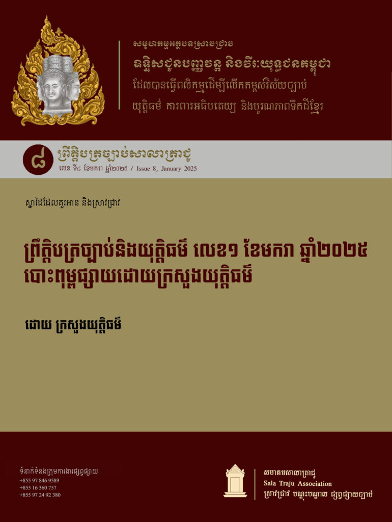 ៣០. ព្រឹត្ដិបត្រច្បាប់និងយុត្ដិធម៌ លេខ១ ខែមករា ឆ្នាំ២០២៥ បោះពុម្ពផ្សាយដោយក្រសួងយុត្ដិធម៌